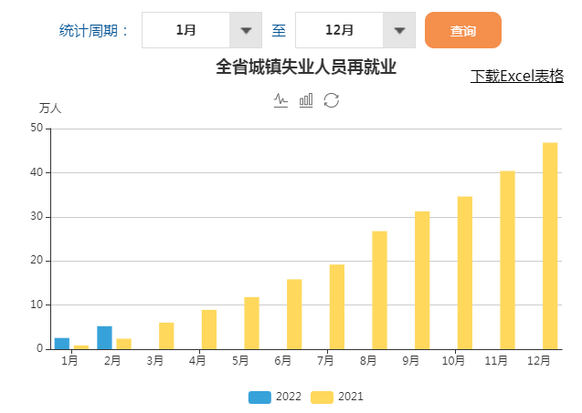 2022年1月-2月湖北省城镇新增就业、城镇失业人员再就业及帮助就业人员
